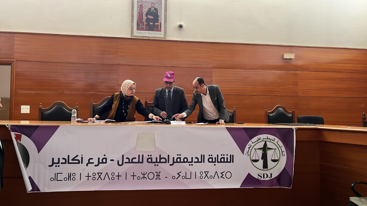 انعقد بتاريخ 17 فبراير 2026 بمحكمة الاستئناف بأكادير الجمع العام التأسيسي للمكتب المحلي للنقابة الديمقراطية للعدل بمحكمة الاستئناف بأكادير، وذلك تحت إشراف المكتب الوطني والمكتب الجهوي للنقابة الديمقراطية للعدل، في سياق الدينامية التنظيمية المتواصلة التي تعرفها النقابة الديمقراطية للعدل على الصعيد الوطني.