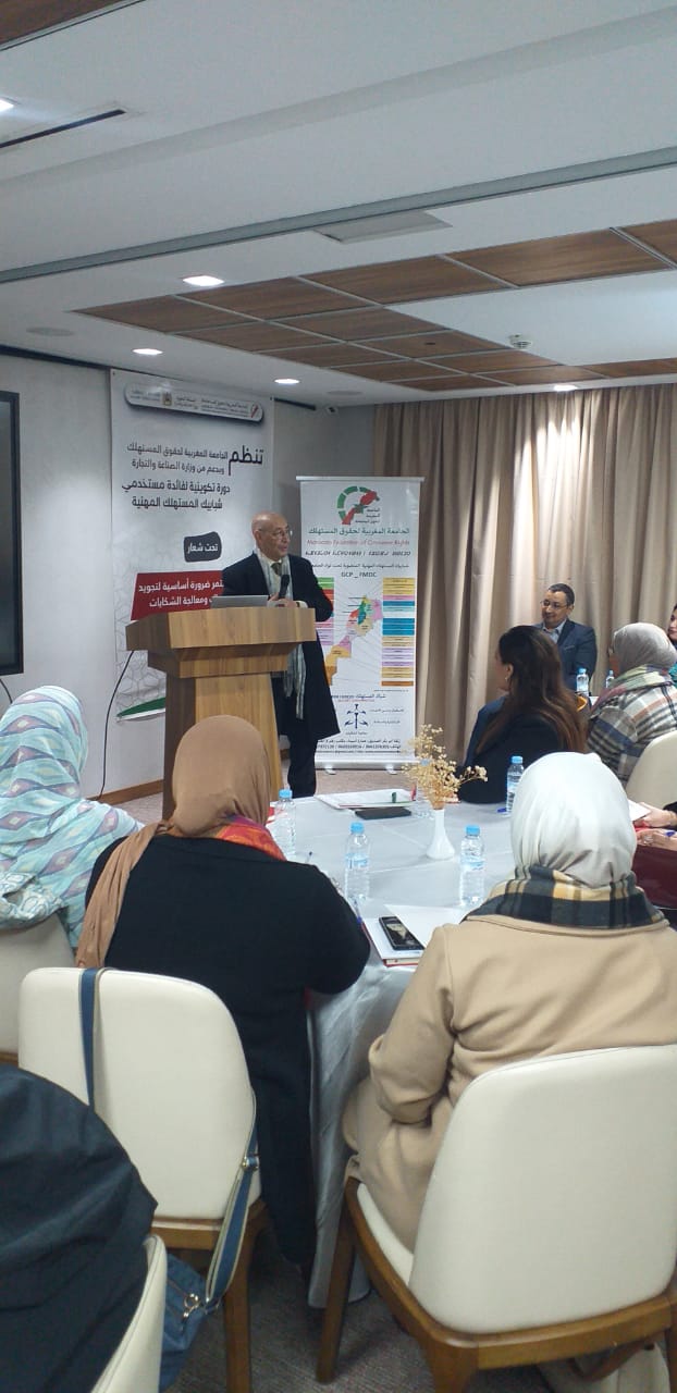 في إطار جهودها المتواصلة لتعزيز حماية المستهلك والارتقاء بجودة الخدمات المقدّمة له، نظّمت الجامعة المغربية لحقوق المستهلك دورة تكوينية لفائدة مستخدمي شبابيك المستهلك المهنية التابعة للجمعيات المنضوية تحت لوائها، وذلك بدعم من وزارة الصناعة والتجارة.